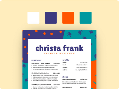 Add a splash of color to your resume to make it stand out from the crowd. Canva takes the stress out of the design, leaving you to focus on the content.